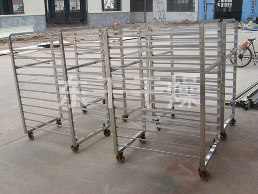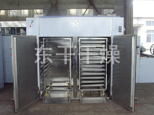 型號規(guī)格 | 每次干燥量(kg) | 風(fēng)機功率(kw) | 耗用蒸氣(kg/h) | 烘車((輛)(set) | 烘盤(只) | 寬×深×高(mm) | 上下溫度(℃) |